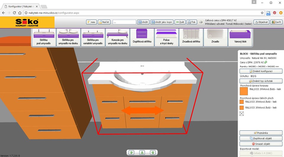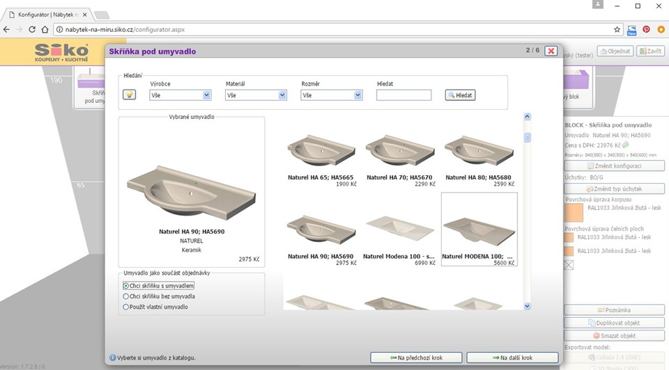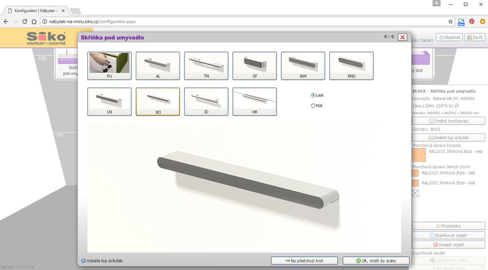 In 2015, we created a 3D configurator of bathroom furniture for Intedoor company (currently runs under SIKO company in Czech Republic and Slovakia). The configurator output is not only visualization in 3D but also data for further processing in CAD systems.